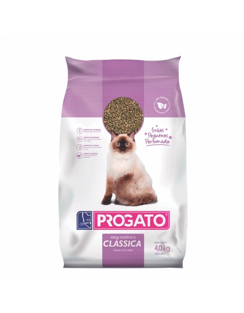 A Areia Higiênica ProGato Clássica Perfumada é composta por grãos pequenos que potencializam a absorção e inibem a proliferação dos maus odores.