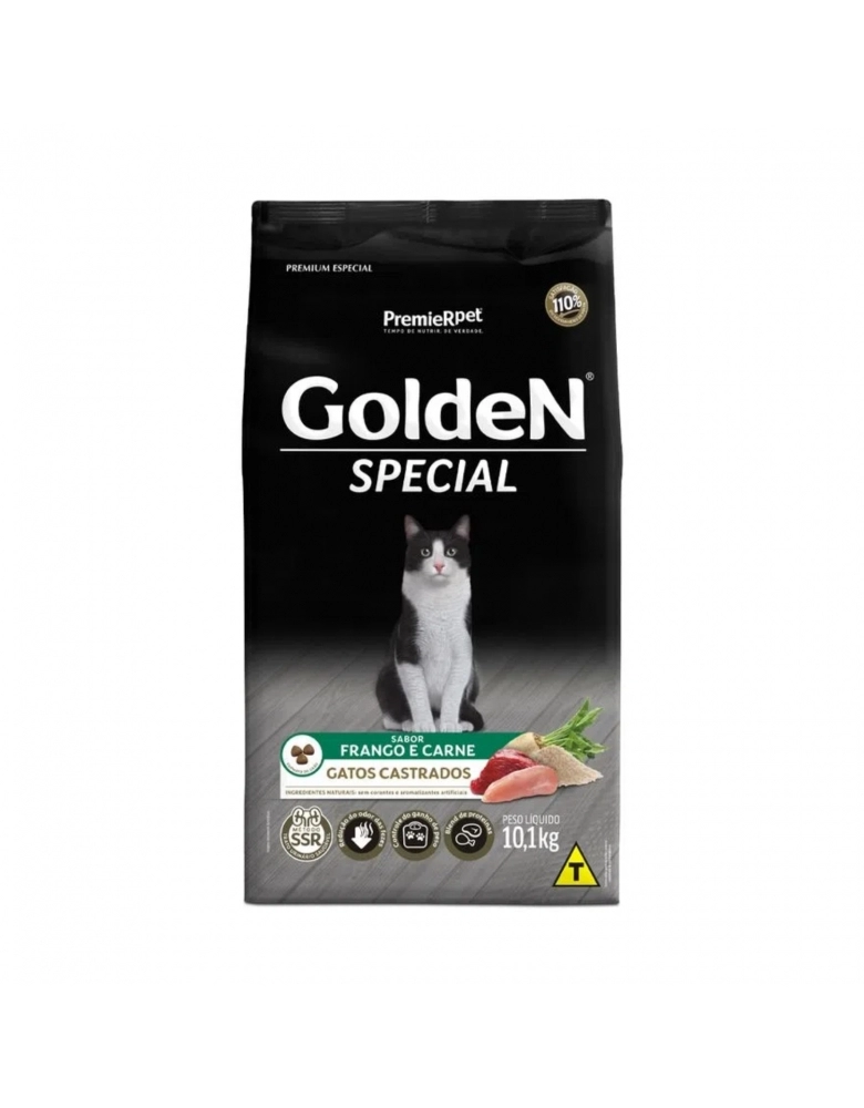 Especialmente formulada para atender às necessidades dos gatos castrados, a Ração Premier Golden para Gatos Adultos Castrados Frango e Carne auxilia na prevenção da obesidade e no cuidado com o trato urinário, garantindo uma nutrição ótima e saudável.