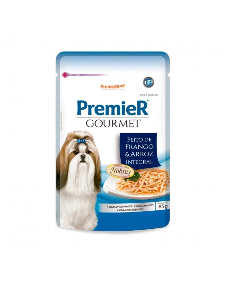 PremieR Gourmet Cães – Frango e Arroz Integral é um alimento Super Premium que faz parte da linha PremieR Gourmet, uma linha de alimentos úmidos especialmente desenvolvida para retribuir todo amor e carinho que os cães nos proporcionam. PremieR Gourmet Cães Frango e Arroz Integral é nobre, nutritivo e natural, pois não contém corantes e aromatizantes artificiais, conservantes e nem ingredientes transgênicos.