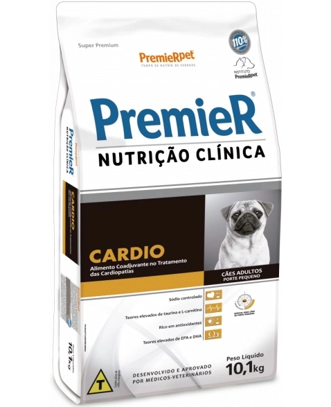 PremieR Nutrição Clínica Cães Cardio Porte Pequeno é um alimento auxiliar ao tratamento da doença/insuficiência cardíaca de cães.