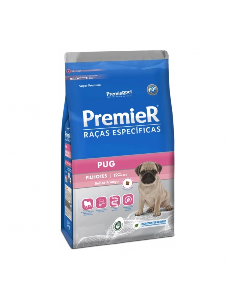 Este produto é indicado para cães filhotes da raça Pug desde o desmame até a idade adulta.