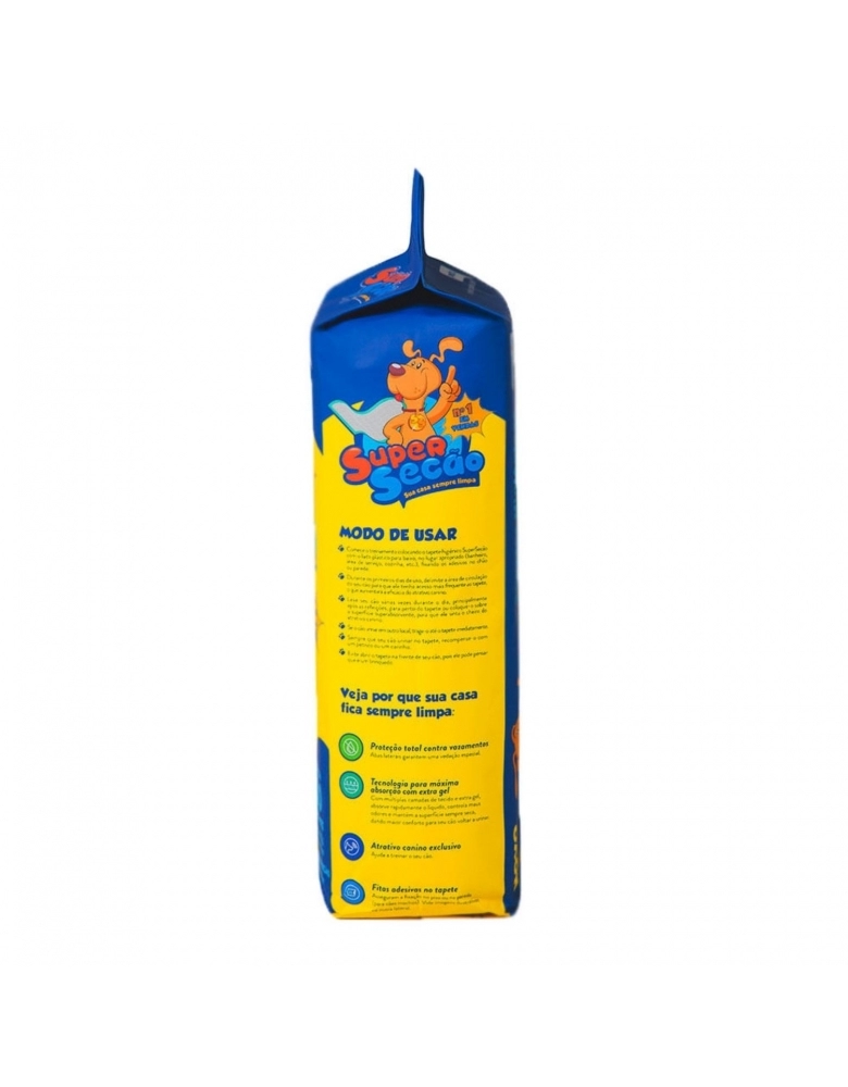 O produto é de super absorção, mantendo as patas do cachorro secas, evitando sujeira e deixando ele mais confortável. O Gel super absorvente inibe odores de xixi.