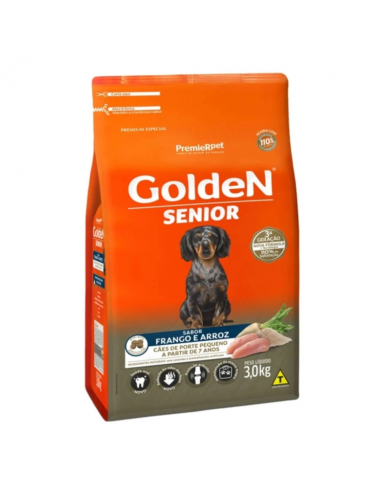 GoldeN® Formula Senior Mini Bits é um alimento especialmente desenvolvido para cães adultos de pequeno porte com mais de 7 anos de idade em manutenção. Alimento completo, balanceado e rico em nutrientes.