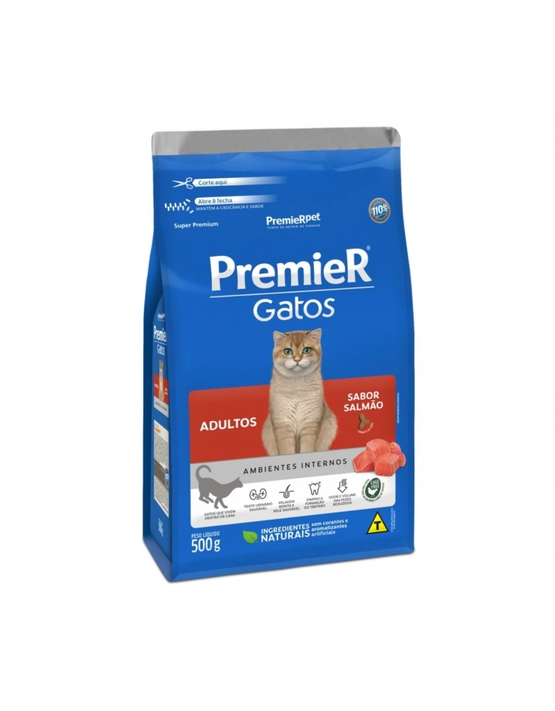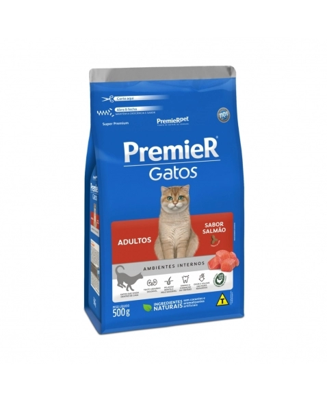 PremieR Gatos Adultos – Salmão oferece ao seu gato adulto uma refeição especial todos os dias. Além de um sabor insuperável, ele apresenta uma combinação exclusiva de ingredientes nobres que deixam a pelagem muito mais bonita e brilhante. Para a saúde do trato urinário, PremieR Gatos Adultos – Salmão acidifica naturalmente a urina, controlando a formação dos indesejáveis cálculos urinários. Conta também com uma poderosa ação antitártaro, proporcionando uma ótima saúde bucal.
