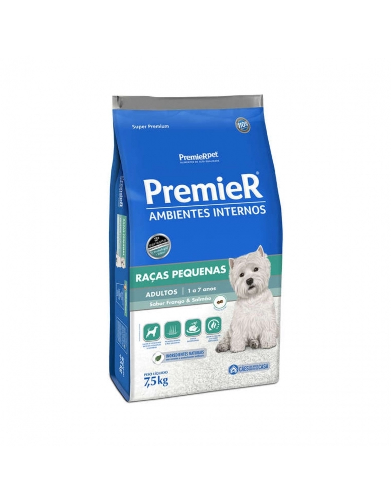 PremieR Ambientes Internos Adultos – Frango e Salmão é o primeiro alimento Super Premium específico para cães com este estilo de vida.