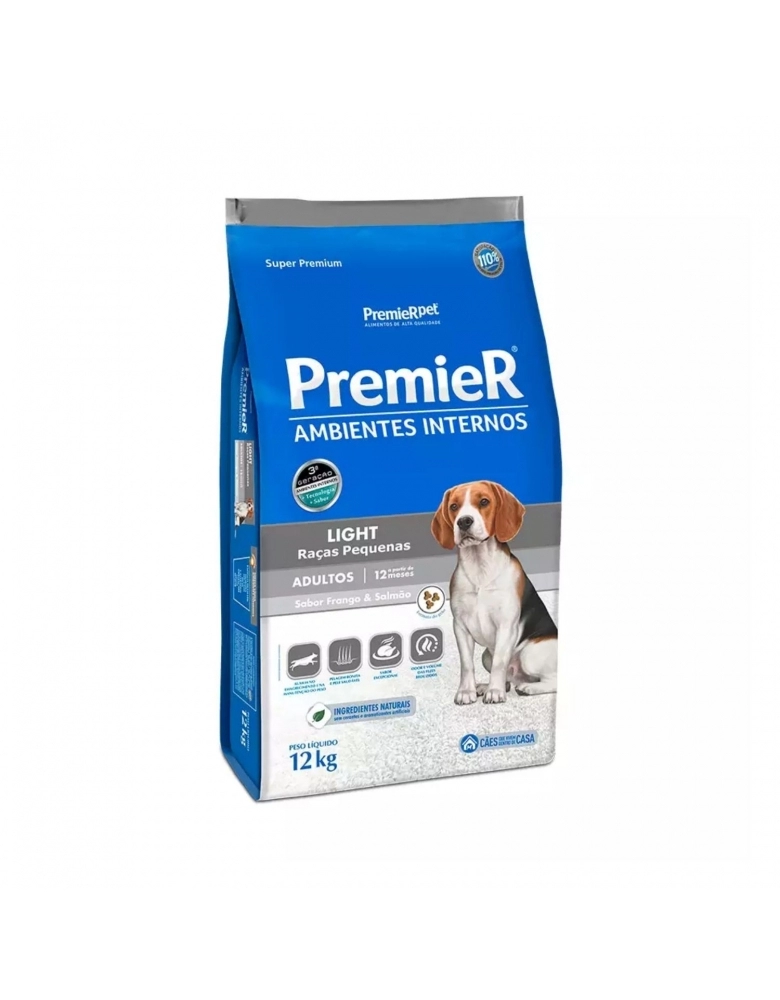PremieR Ambientes Internos Light Adultos é um alimento Super Premium destinado a estes cães, com o objetivo de mantê-los em forma, através da redução ou controle do peso.