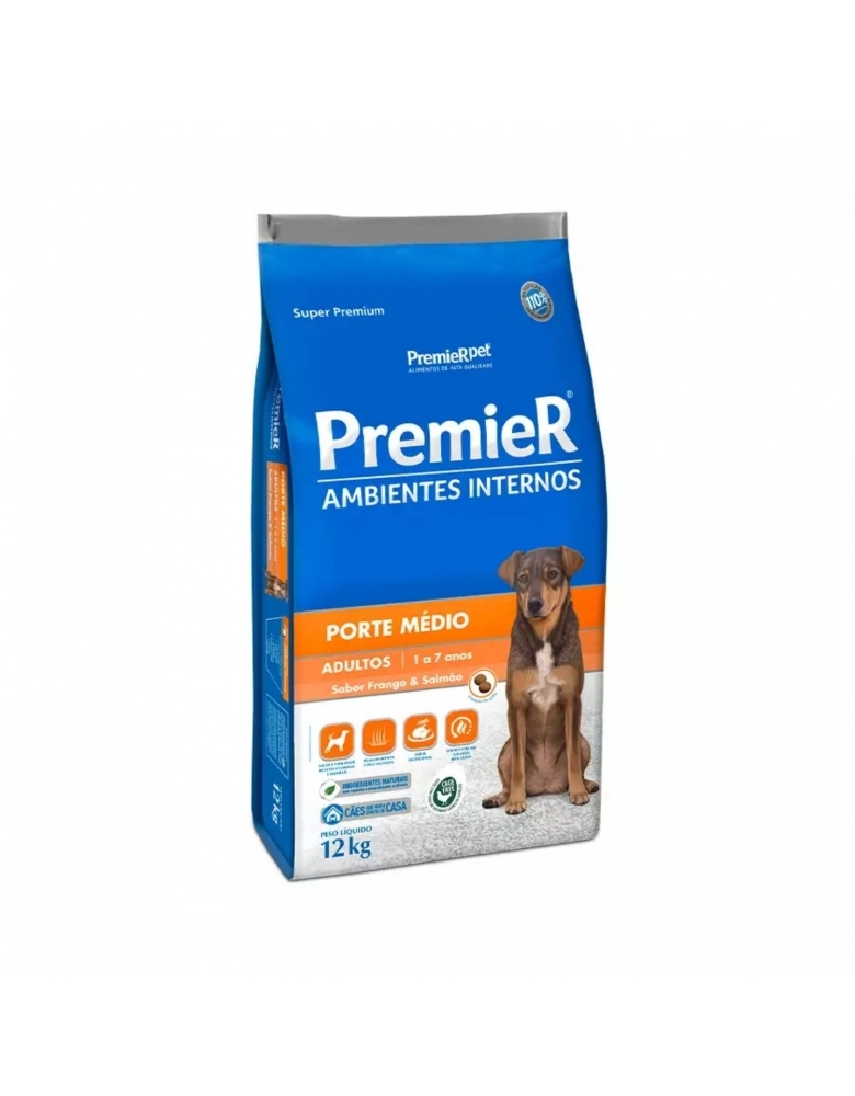 PremieR Ambientes Internos Cães Adultos Porte Médio – Sabor Frango e Salmão é um alimento Super Premium recomendado para cães com este estilo de vida.