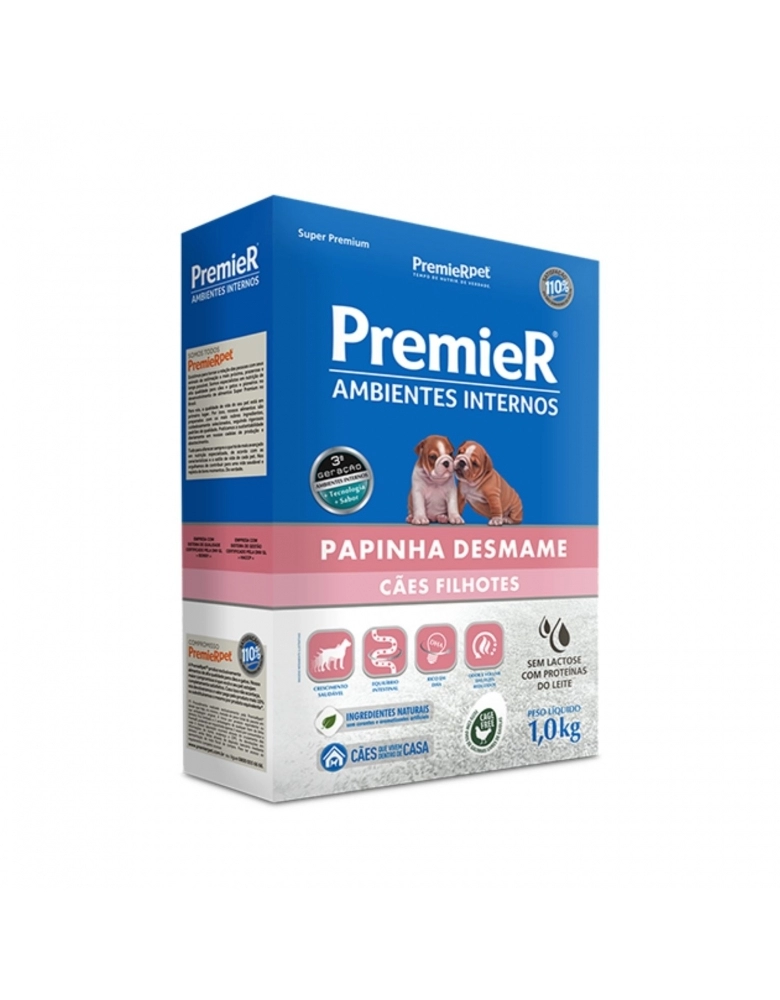 Para isso, sua fórmula exclusiva com leite sem lactose apresenta excelente sabor e mantém a saúde do intestino, evitando problemas por rejeição à lactose. PremieR Ambientes Internos Papinha Desmame é um alimento completo e balanceado que satisfaz 100% das necessidades nutricionais dos filhotes em crescimento.