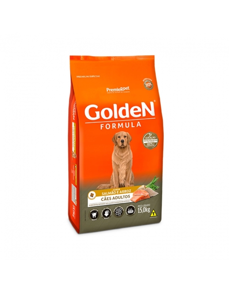 GoldeN Formula Adultos Salmão & Arroz é um produto completo e visa, acima de tudo, proporcionar aos cães o nível ideal de todos os nutrientes que eles necessitam para uma vida longa e saudável.