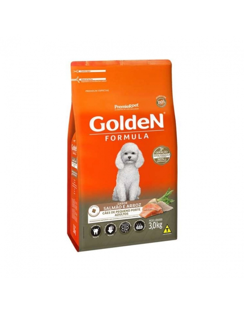 GoldeN Formula Adultos Salmão & Arroz Pequeno Porte é um alimento Premium Especial desenvolvido para cães adultos exigentes de pequeno porte.