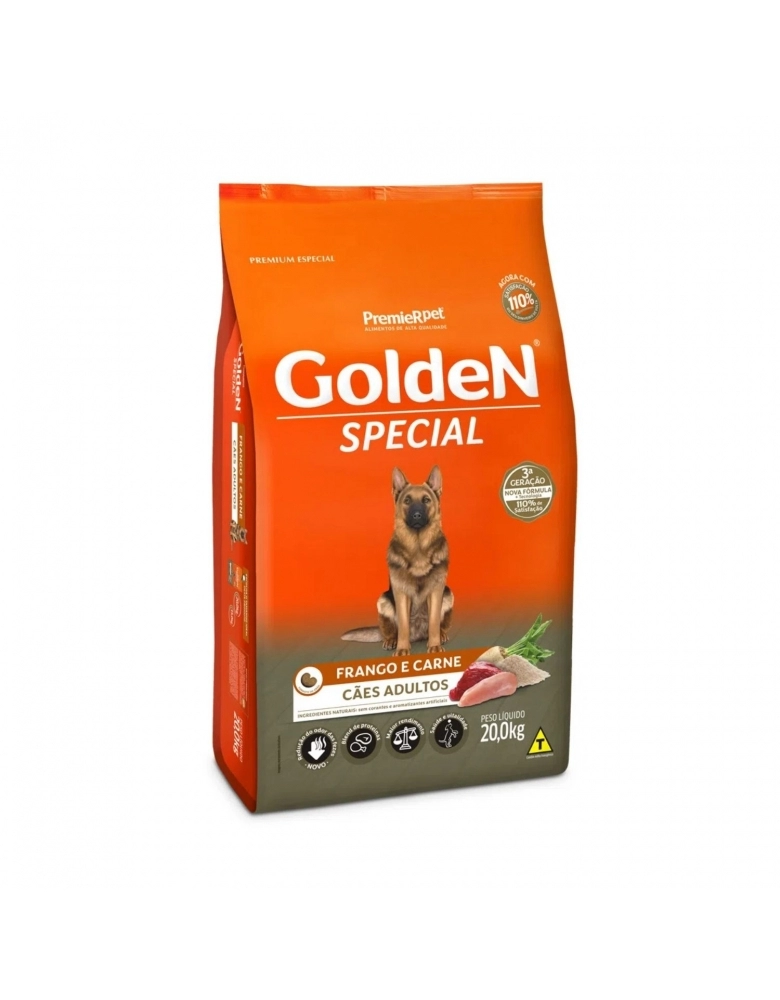 GoldeN Special Cães Adultos é um alimento completo e balanceado que proporciona aos cães adultos o nível ideal de todos os ingredientes que eles necessitam para uma vida longa e saudável.