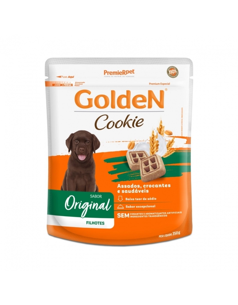 Para tornar os momentos junto ao seu cão mais divertidos e prazerosos a PremieRpet® desenvolveu a linha GoldeN Cookie, resultado da perfeita combinação de qualidade e sabor, com cookies assados, crocantes e saudáveis. GoldeN Cookie é cuidadosamente preparado com ingredientes selecionados, sem adição de açúcar, sem corantes e aromatizantes artificiais e sem ingredientes transgênicos.