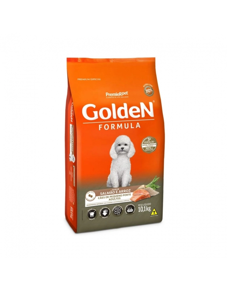 GoldeN Formula Adultos Salmão & Arroz Pequeno Porte é um alimento Premium Especial desenvolvido para cães adultos exigentes de pequeno porte.