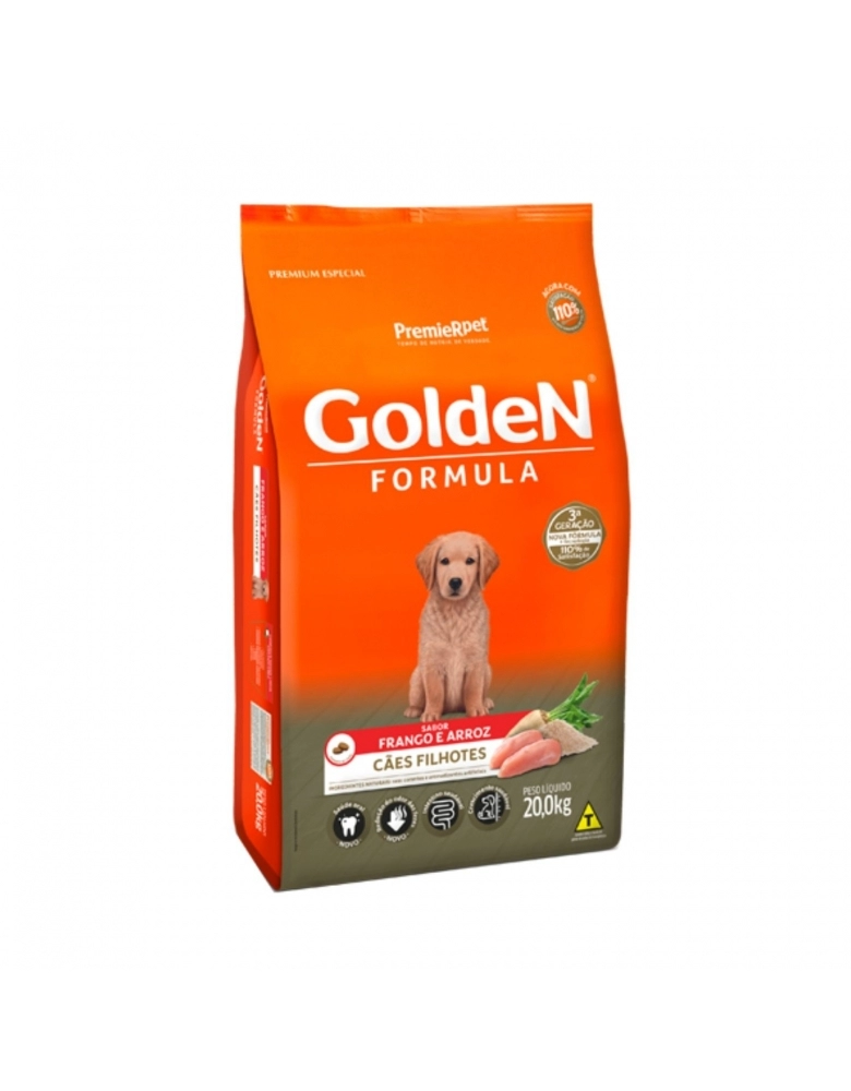 GoldeN Formula Filhotes Frango & Arroz é um alimento Premium Especial completo que visa, acima de tudo, proporcionar aos cães o nível ideal de todos os nutrientes que eles necessitam para um crescimento forte e saudável.