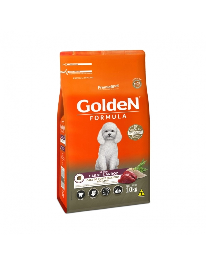 GoldeN Formula Cães Adultos Porte Pequeno Carne & Arroz 1KG