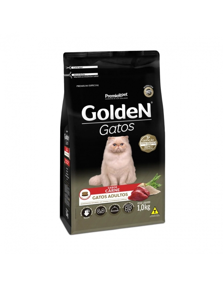 Especialmente formulada para atender às necessidades dos gatos castrados, GoldeN Gatos Castrados Carne auxilia na prevenção da obesidade e no cuidado com o trato urinário, garantindo uma nutrição ótima e saudável.