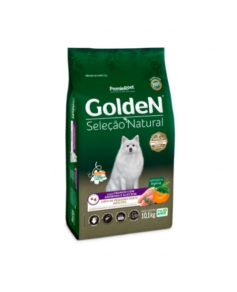 GoldeN Seleção Natural Cães Adultos Raças Pequenas Sabor Frango com Abóbora e Alecrim 10,1KG