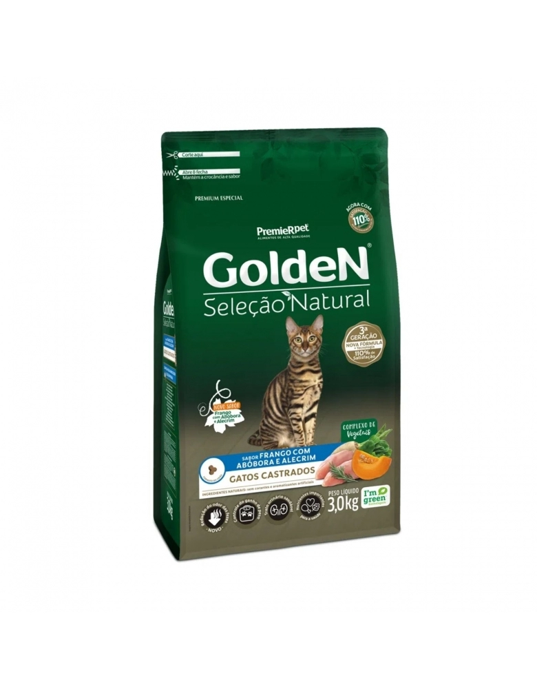 GoldeN Seleção Natural Gatos Castrados Sabor Frango com Abóbora e Alecrim