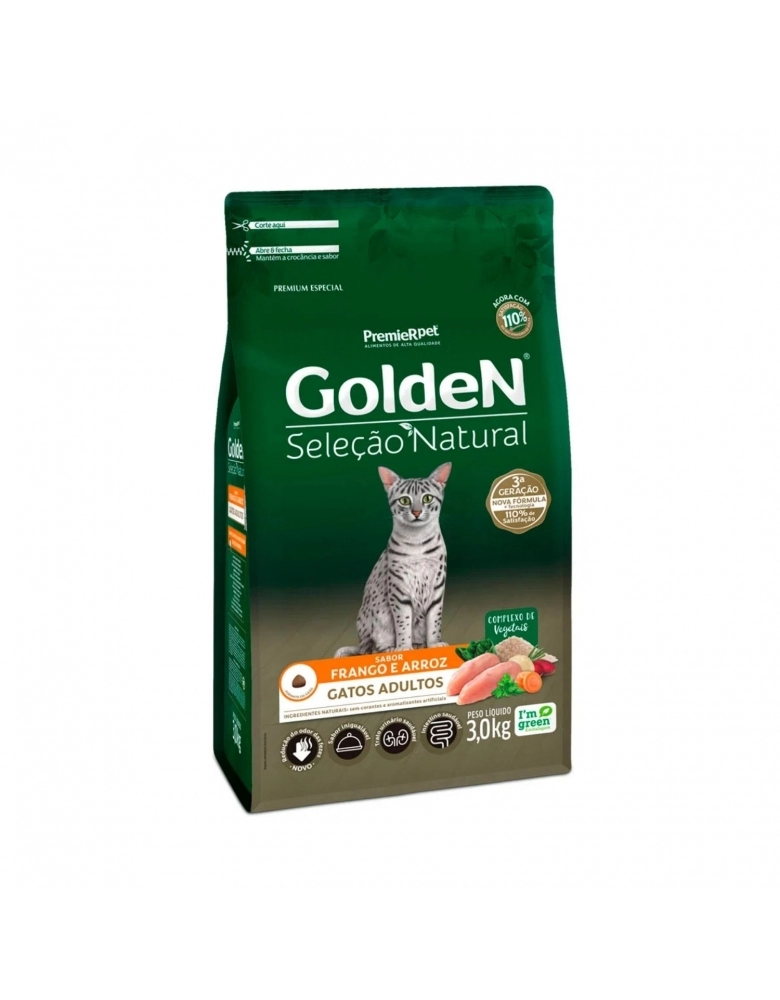 GoldeN Seleção Natural Gatos Adultos Sabor Frango & Arroz 3 Kg