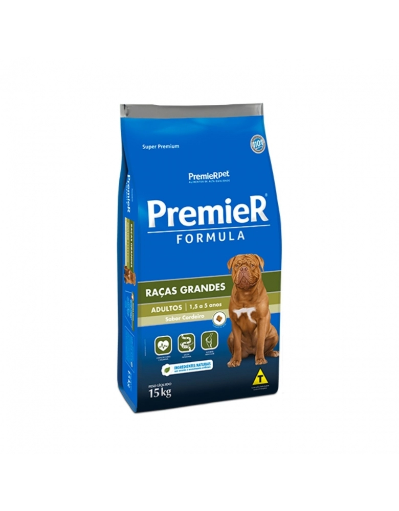 Para isso PremieR Formula Raças Grandes Cordeiro propicia uma nutrição ótima, através de níveis excelentes de proteínas de alta qualidade, correta proporção entre cálcio e fósforo, calorias adequadas e cuidados articulares.