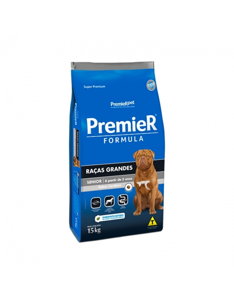 PremieR Formula Raças Grandes Senior Cordeiro é um alimento Super Premium desenvolvido com base nas necessidades dos cães grandes e gigantes com mais de cinco anos, oferecendo saúde, bem-estar e longevidade.