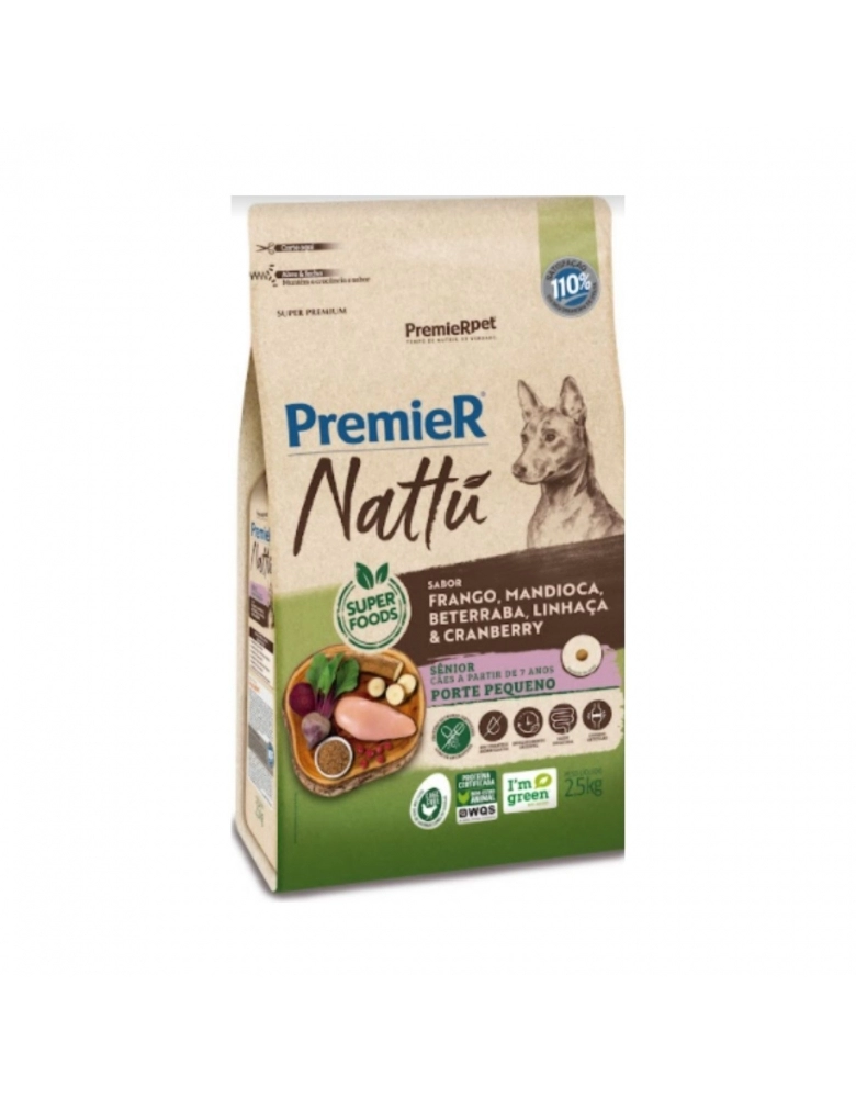 PremieR Nattu Cães Sênior Porte Pequeno sabor Mandioca 2,5 KG