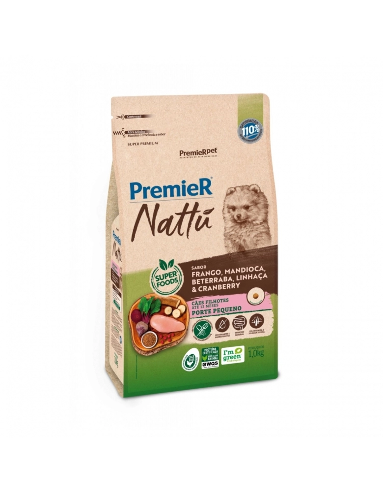 PremieR Nattu Cães Filhotes Porte Pequeno sabor Mandioca 1 KG