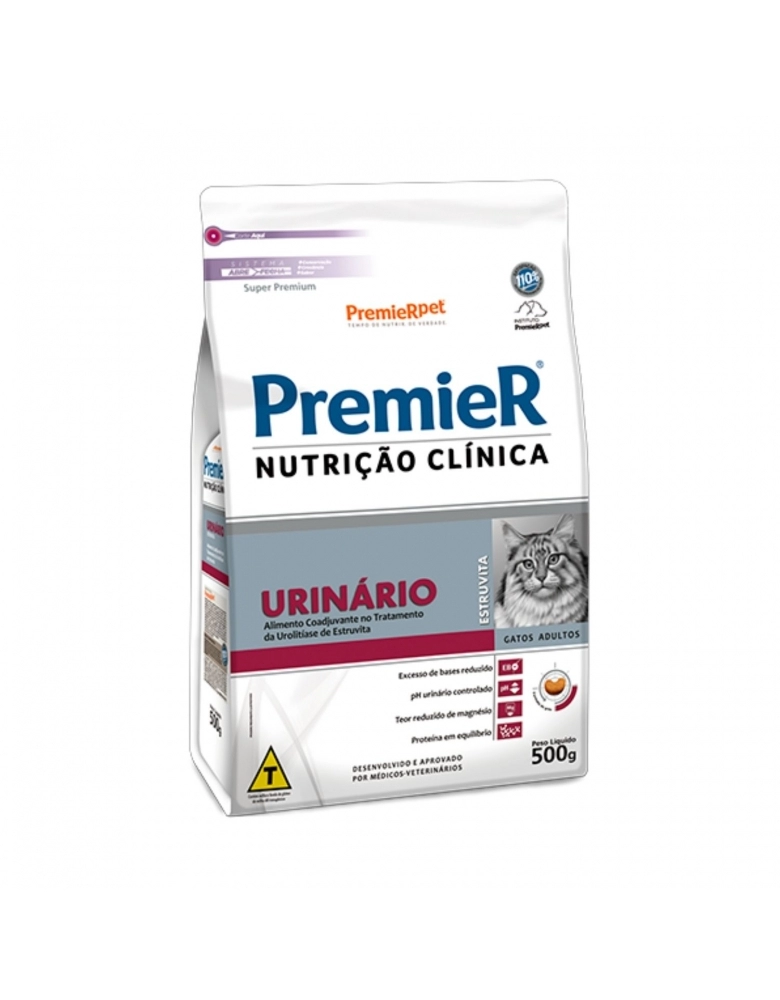 PremieR Nutrição Clínica Gatos Urinário Estruvita é um alimento Super Premium auxiliar ao tratamento dos cálculos urinários de estruvita. Algumas alterações na alimentação podem ser benéficas em pacientes com cálculos urinários.