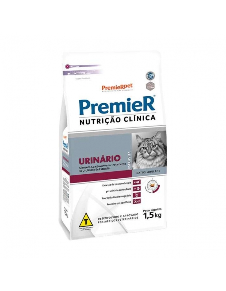 PremieR Nutrição Clínica Gatos Urinário Estruvita é um alimento Super Premium auxiliar ao tratamento dos cálculos urinários de estruvita. Algumas alterações na alimentação podem ser benéficas em pacientes com cálculos urinários.