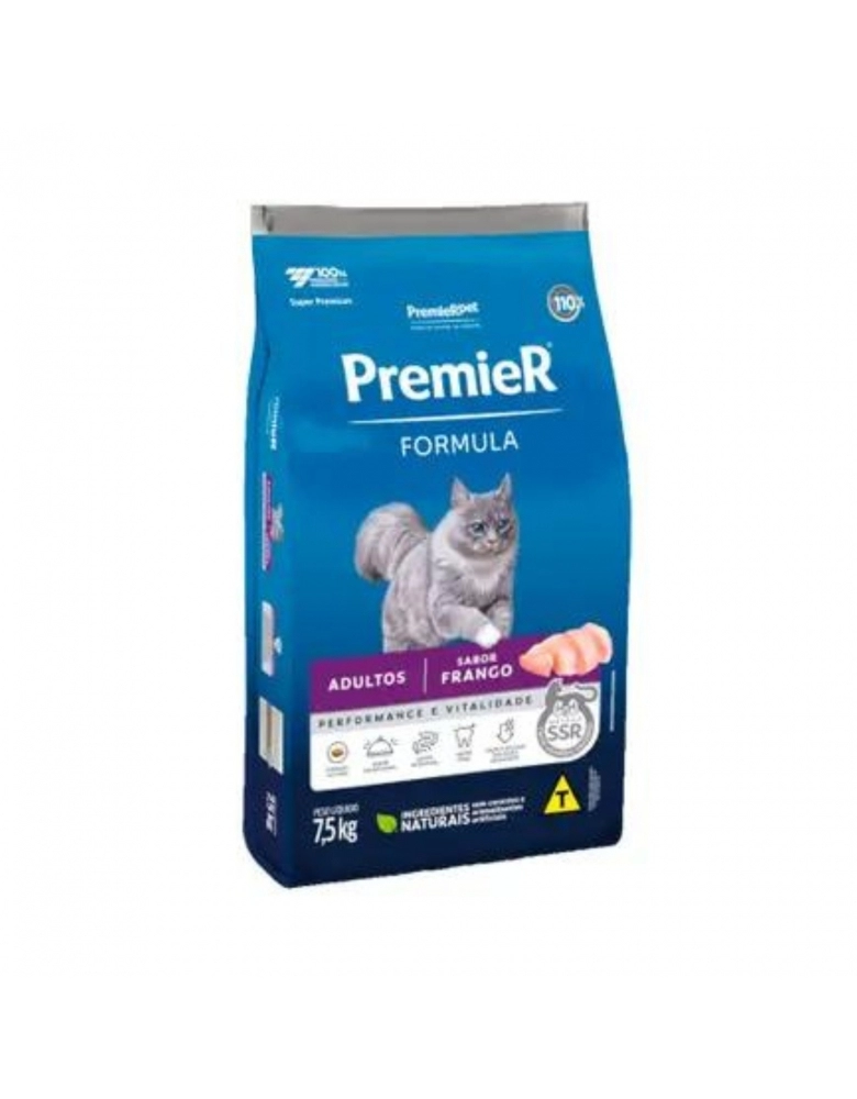 PremieR® Formula Gatos Adultos Sabor Frango é um alimento Super Premium, formulado com ingredientes de alta qualidade, nutricionalmente completo e balanceado para gatos adultos e fornece níveis adequados de nutrientes, como vitaminas e minerais, para uma vida longa e saudável.