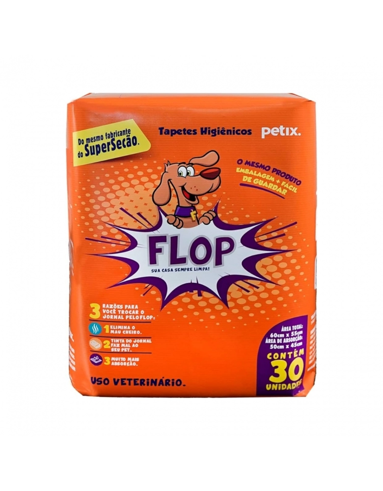 O Tapete Higiênico para Cachorro Descartável Flop a Petix é ótimo para manter o espaço dos seus pets sempre sequinho e livre de odores. Ele possui atrativo canino, fitas adesivas para fixação, e ainda elimina o mal cheiro. Tem uma boa capacidade de absorção, de 1L até 1,8L. Indicado para cães de todas as idades, é ideal para os de pequeno e médio porte. É necessário que sejam feitas trocas diárias, conforme a quantidade de xixi do seu pet. Contém 30 unidades.